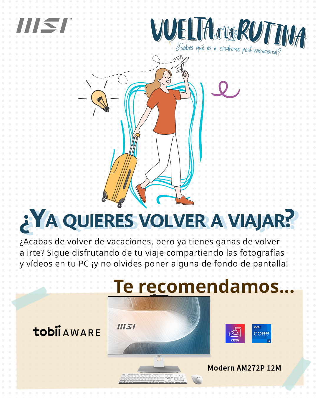 - Únete a la promoción Vuelta a la rutina y comparte públicamente la prueba en Facebook, Twitter, Instagram, o LinkedIn y y comenta con el hashtag #MSIBackToWork.